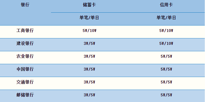 3.微信支付部分银行交易的限额参考(具体额度请以实际支付时的提示为准):