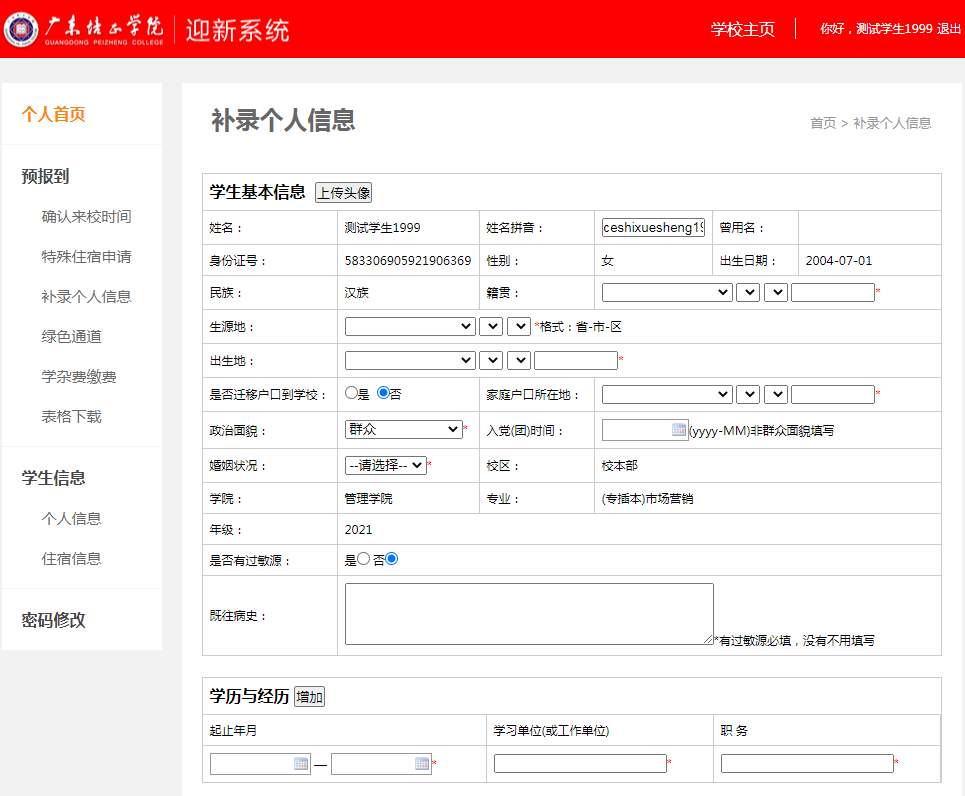 一、新生入学前,必须登录学校预报到系统,进行如下预报到内容: